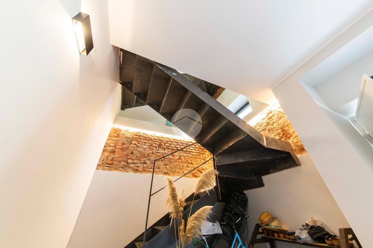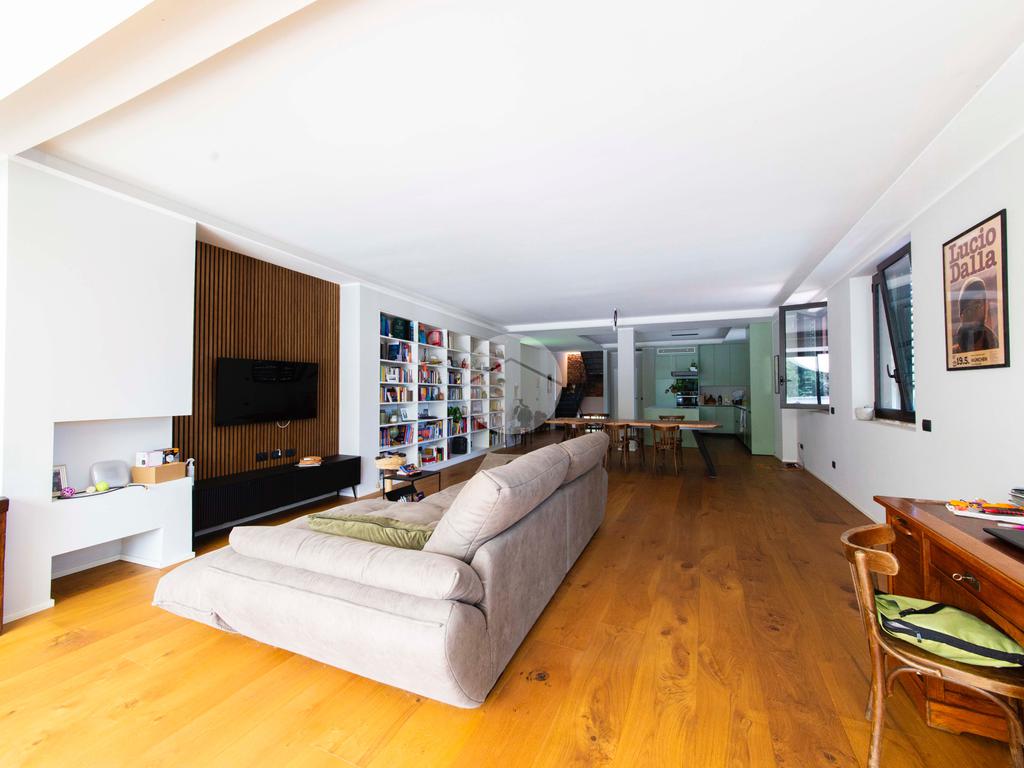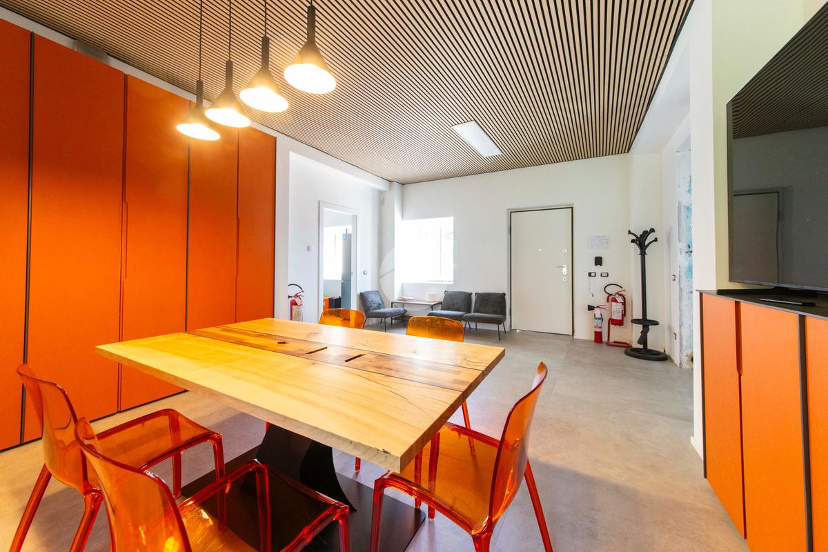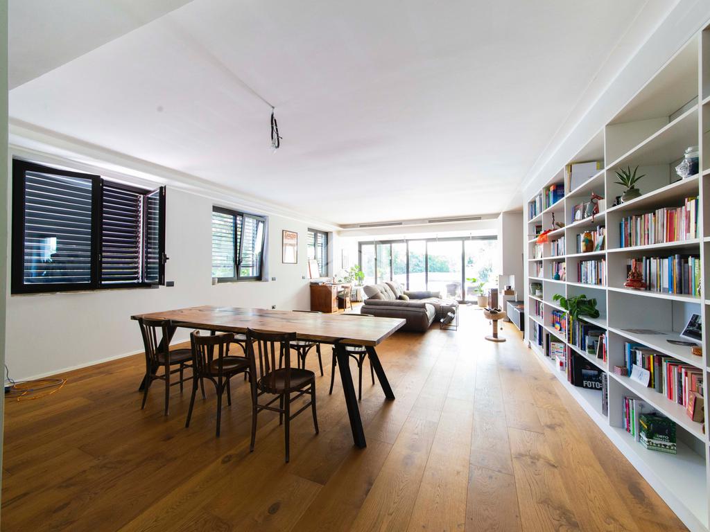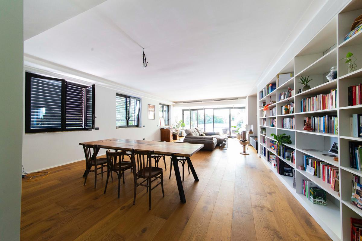 Dal soggiorno si accede a un terrazzo esterno, , che nasconde una particolarità molto comoda: tramite una scala esterna, è possibile raggiungere direttamente il giardino e il piano terra senza passare dagli uffici, garantendo così privacy e indipendenza tra gli spazi lavorativi e quelli abitativi.