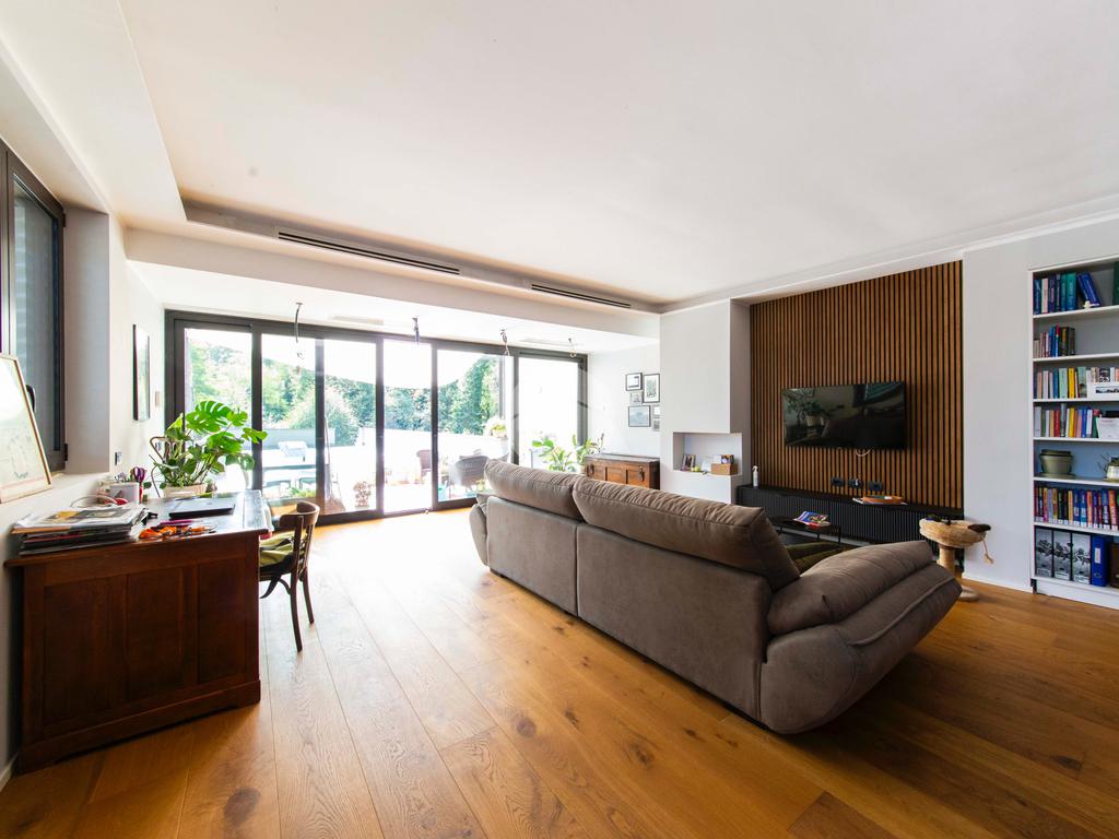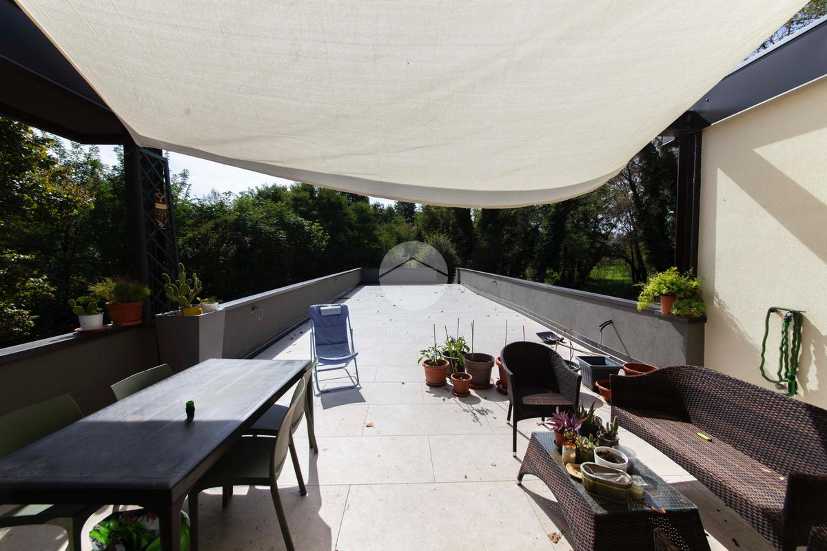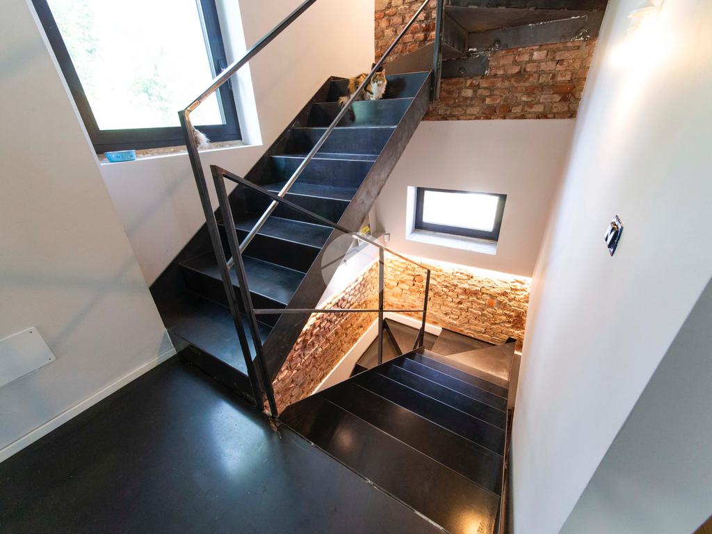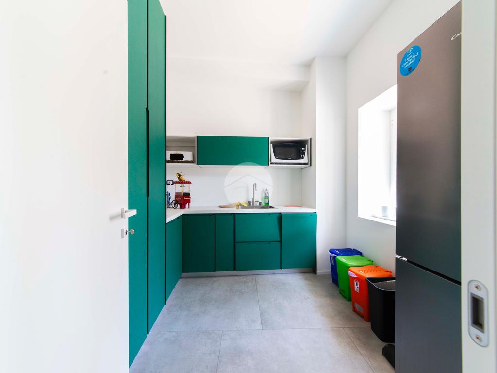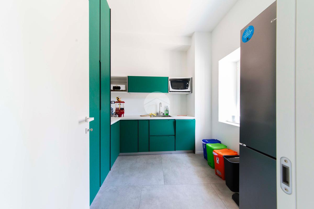 Dal soggiorno si accede a un terrazzo esterno, , che nasconde una particolarità molto comoda: tramite una scala esterna, è possibile raggiungere direttamente il giardino e il piano terra senza passare dagli uffici, garantendo così privacy e indipendenza tra gli spazi lavorativi e quelli abitativi.