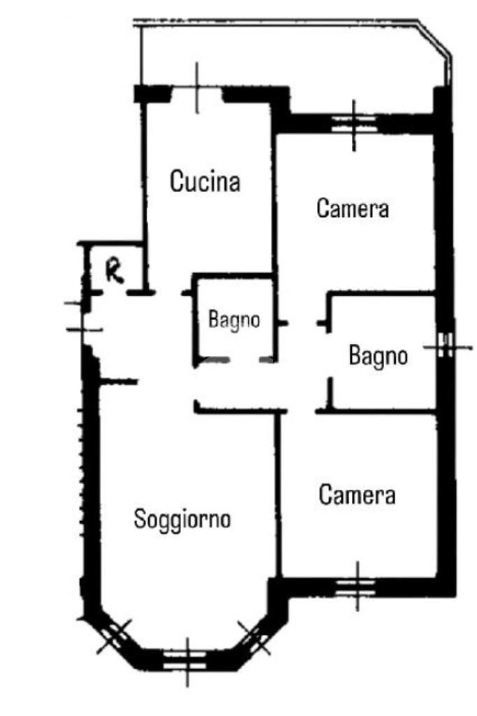 ingresso in disimpegno , che permette l’accesso ai vari ambienti della casa e dove rispettivamente troviamo: sull’esposizione sinistra la cucina abitabile, perfetta per chi ama vivere la cucina come ambiente centrale della quotidianità, ideale sia per cucinare che per pranzare in tranquillità, ambiente dal quale si può accedere ad un ampio e comodo balcone che affaccia sull’esposizione interna dello stabile, dotato di tende da sole elettriche. A destra dell’ingresso , si accede all’ampia zona living, ideale per momenti di relax con amici e familiari. Un secondo disimpegno ci accoglie nella zona notte, composta da due grandi camere matrimoniali, molto luminose ed una dotata di accesso diretto al balcone, con affaccio su corte interna. Completano la soluzione due bagni, dotati di vasca e box doccia,rifiniti con cura.
