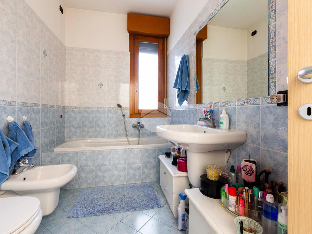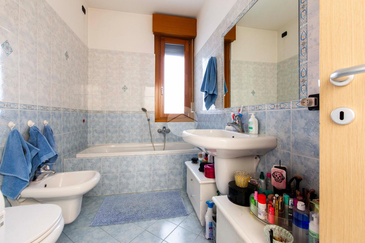 la camera matrimoniale e la cameretta entrambe finestrate, con medesimo affaccio della zona living ed a concludere l’unità il primo bagno padronale, finestrato con vasca in muratura ed il bagno di servizio con box doccia ed aspirazione forzata.