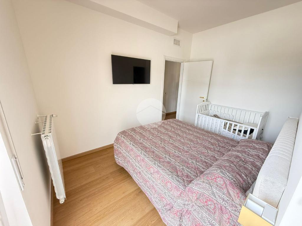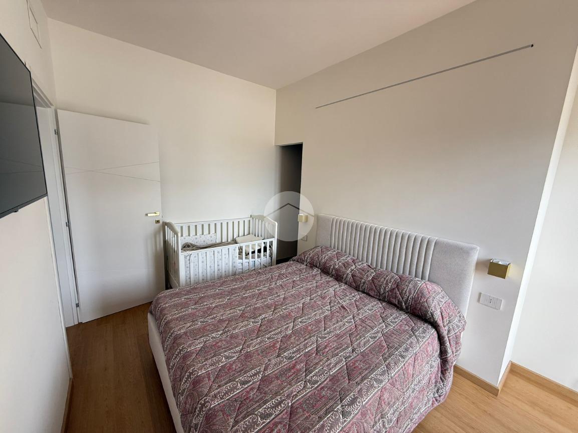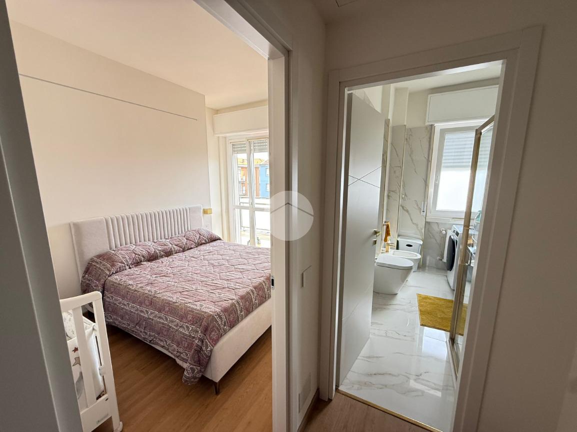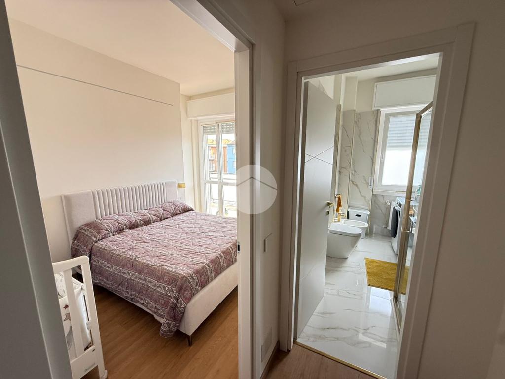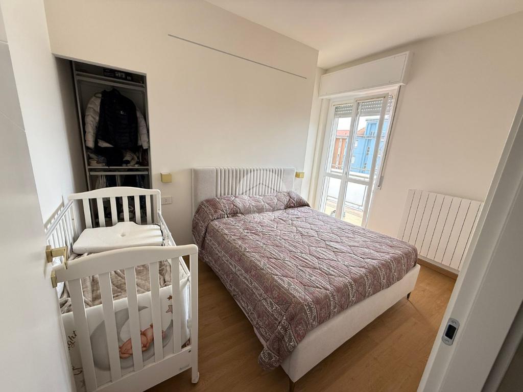 Tramite disimpegno si accede alla zona notte composta da una camera matrimoniale ampia e luminosa arricchita dalla presenza di una comoda cabina armadio, perfettamente organizzata per ottimizzare gli spazi e garantire la massima praticità. Dalla stessa camera si accede al balcone: uno spazio esterno vivibile, perfetto per rilassarsi all’aria aperta o per godere di un affaccio aperto sulla via