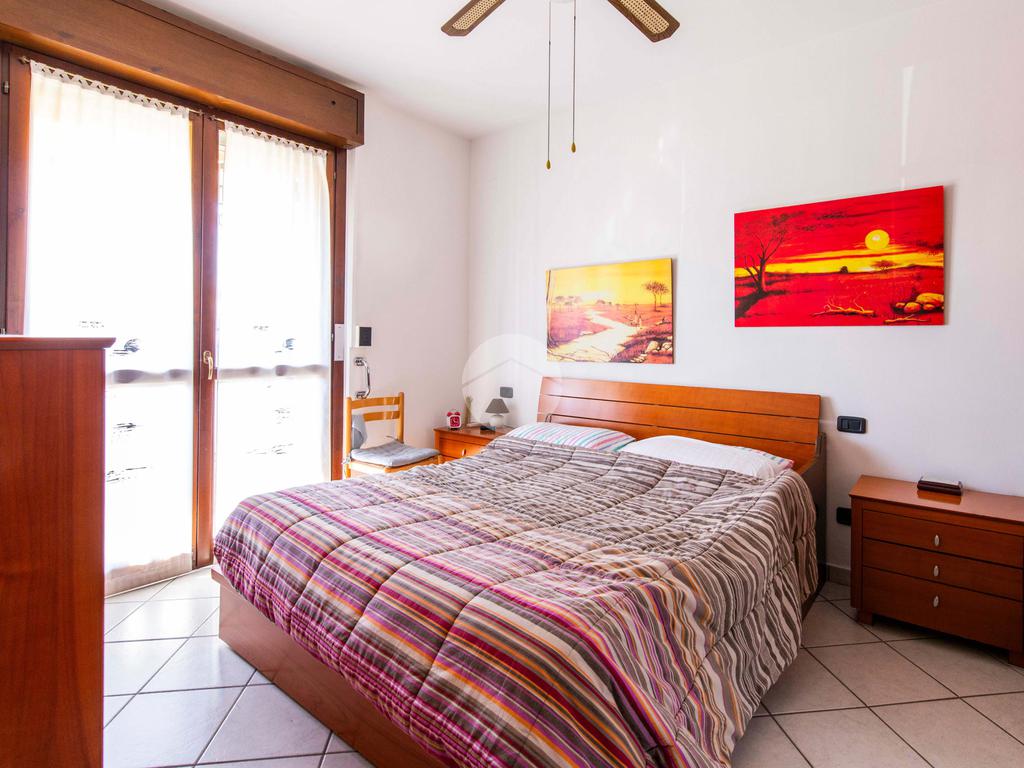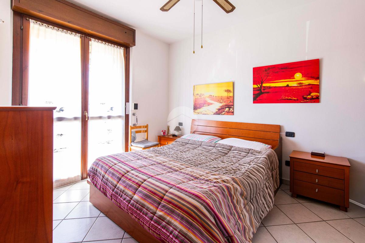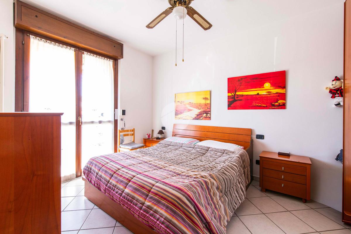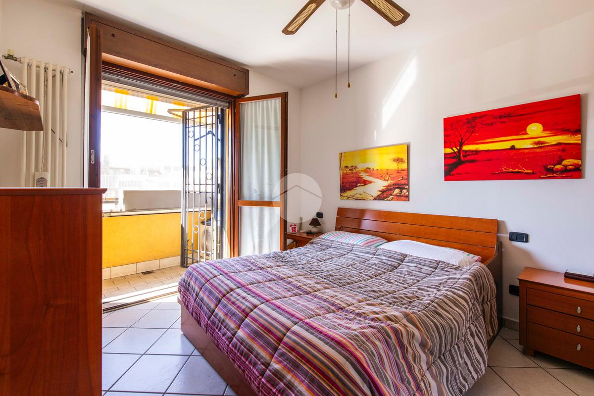 Tramite disimpegno si accede alla zona notte composta da una camera matrimoniale, un ambiente luminoso con portafinestra e medesimo affaccio della cucina.