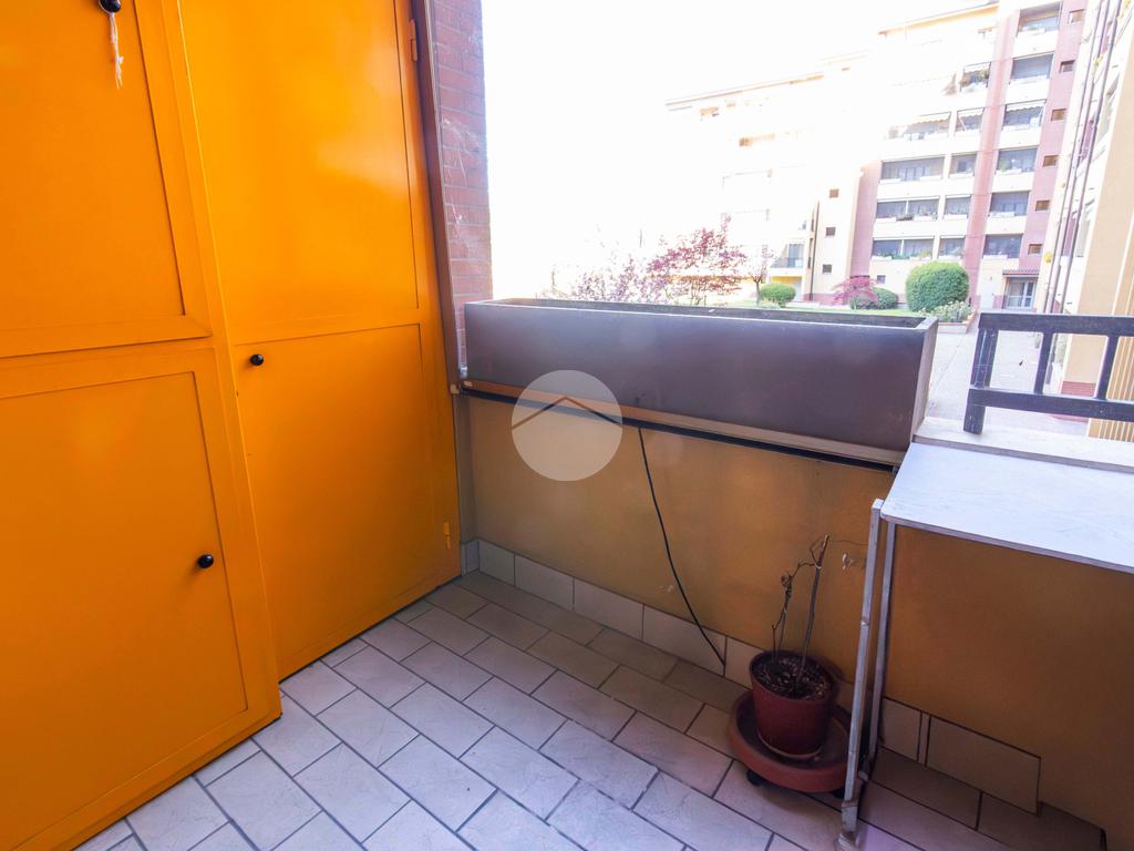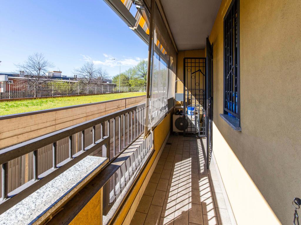 L’appartamento risulta essere così composto : L’ingresso introduce direttamente nella zona giorno impreziosita da una portafinestra che permette l’accesso al primo balcone della soluzione, con vista aperta sul verde condominiale.