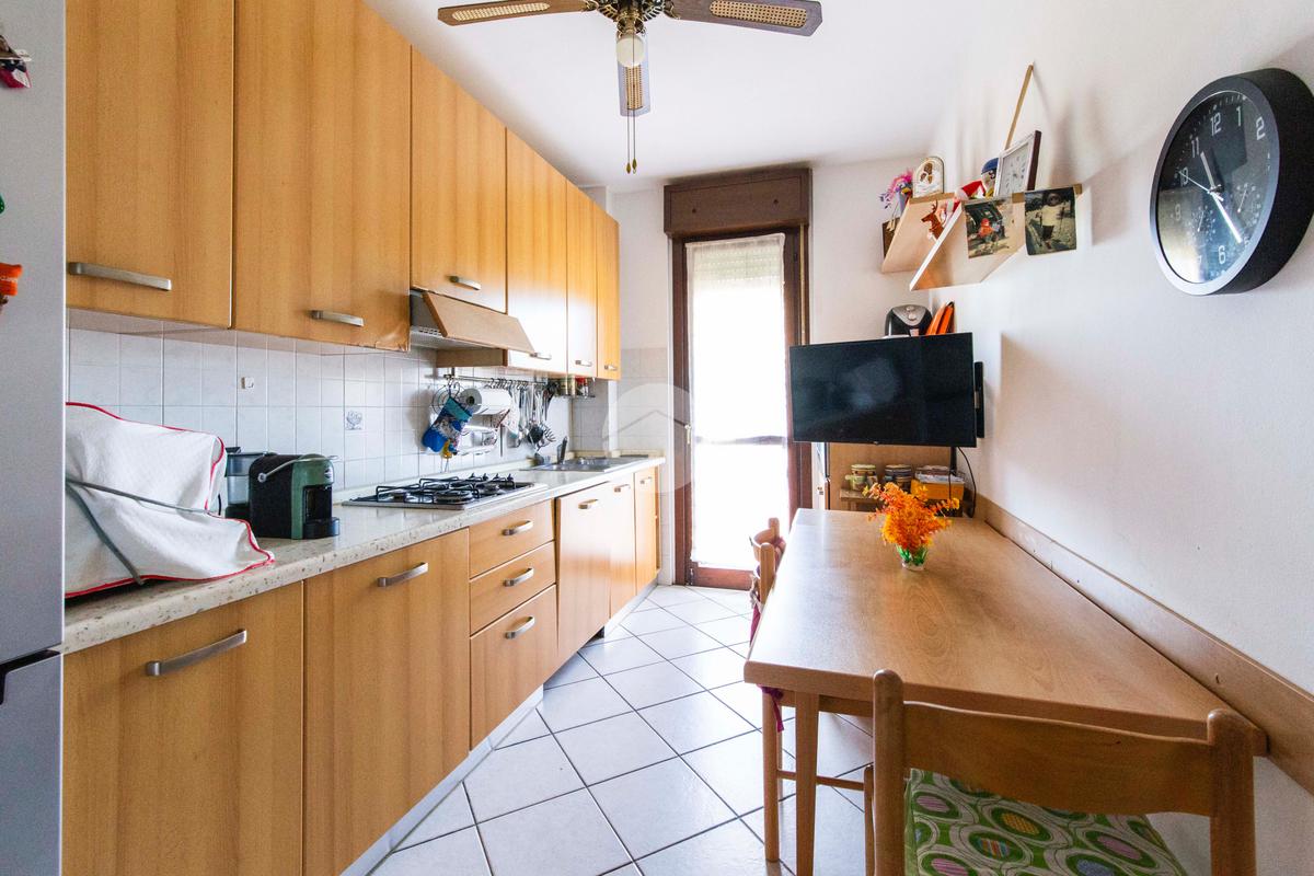 Troviamo poi la cucina abitabile, dotata di portafinestra con accesso al secondo balcone.